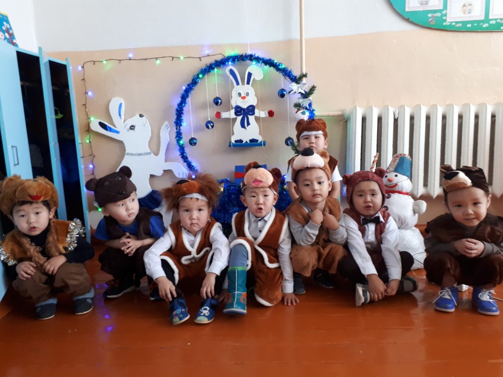 Башкарыкчы: Чаа чыл биле кырган-ачай! Биске келгенинер дээш ооруп тур бис. Бистин-биле самнап-ойнап хоглээлинер. Уруглар кырган-ачай соок-ирей- биле хоглээлинер.